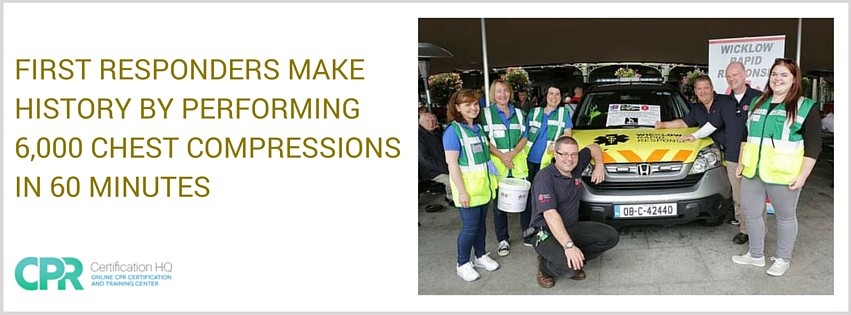 With the aim to achieve the world record in process, a team of cardiac first responders carried out 6,000 chest compressions in just 60 minutes. This record was set at the Martello last Saturday. It was part of a CPR marathon, where the volunteers from all over Wicklow did four minutes spell each at a time from morning till evening. The organizers are now waiting for the record to get the official confirmation from the Guinness World Record organization. Moreover, Wicklow Rapid Response was also launched on the day by a European boxing champion Garda Adam Nolan. The new volunteer emergency medical services for Wicklow as well as Bray Cardiac First Responders hosted the event. The first responders carried out 50,000 chest compressions during the course of the day and were joined by Garda Adam Nolan and Sgt John Fitzpatrick who also did their share of the CPR. http://www.independent.ie/regionals/wicklowpeople/news/first-responders-try-to-break-cpr-record-31495408.html