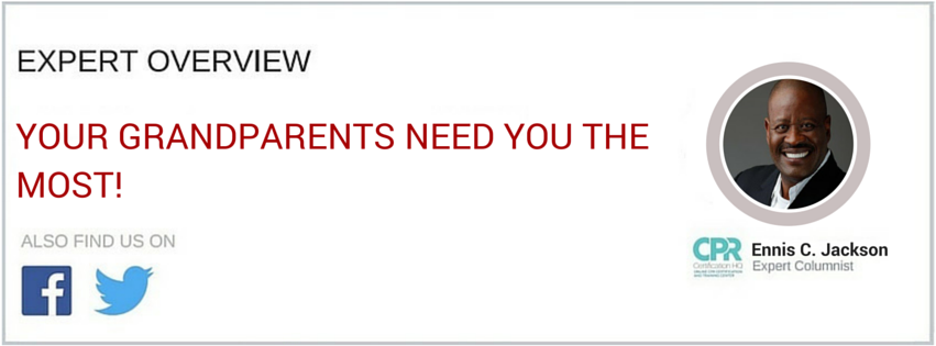 We are your grandparent’s and you first recognized us when you stayed with us while your mom and dad wondered off on vacation. We lifted you up and hugged you; we smiled when you smiled, and we took you to the park and a bigger world class entertainment center such as Disneyland, Disney World, or Universal Studios. We took care of you as we noticed how strong your love for us grew over the years. We noticed in your eyes and your smile how you enjoy each moment with us. You are now an adult, working and making money. You get married and have kids. This means that time did not stop, and neither did the aging of your grandparent’s. What comes with aging is the wear and tear of the human body. It is no doubt that we will wear out, just like equipment gets rusty, grass turns yellow, and the hair on our face and head turn gray. In the simplest terms, what we just mentioned is called responding to the call of mother and father time. Yes, we are old where we can’t run like we use too, we can’t swim like we use too, and we can’t pick you up over our heads and smile like we use too. We can only sit on our chair and have you come to us so that we can squeeze you lesser than we could before. It is the same love as it was when you were a little tike. It was a time when we took care of you. Now it’s time for you to take care of us. Our age brings medical conditions that may require your assistance. Sometimes we fall; we may need a little help getting back up. Our vision may diminish to the point where we need help picking out that fruit, or cooking dinner. But the most important help that we need from you is to provide a life-saving skill that will allow us to see and hug you once again, on another day. Every day, elderly people suffer from cardiac arrest. Cardiac arrest is a condition that occurs when the heart completely stops. There is no breathing, and if you don’t start this life-saving technique within minutes, we will never wake up again. The skill of restarting the heart is simple and done by children as young as seven and eight years old. This skill is called cardiopulmonary resuscitation (CPR). Let us understand it a bit further. Cardiac arrest usually doesn’t start abruptly. It can present as a vague feeling in the chest, jaw, neck, back or upper abdomen. It can even present as a toothache. Or it can sneak on you and drop you like a hot potato. The symptoms and related information about CPR can be learnedin a CPR class. The value is worth all the love and money in the world. To be brief, here’s an example of how to do CPR. The ill person, usually an elderly person must be placed on a firm surface, such as the floor. Sometimes we fall to the floor and are already in position to receive CPR. Other times, we go into cardiac arrest in our sleep and will need to be placed on the floor. Once on the floor, place your hands on the center of our chest and slide them down just a bit. Now push hard and fast. Of course, before you do this, call 911 so the paramedics can start driving our way. Keep pushing, and pushing, and pushing. Don’t stop until help arrives, either from another person who knows how to do CPR or emergency services has arrived. You can also stop if we wake up and have a pulse. It would also be nice if we had an Automatic External Defibrillator (AED). Having an AED is a valuable tool because many times cardiac arrest needs to be shocked and the AED can do that. Success does occur, and before you know it, we hug you once again. As grandparents, we need you; Aging is a natural occurrence, and it does not mean that we have to depart this world right now. If you give us the opportunity to live and see another day, a feeling of overwhelming goodness will shroud your entire body. You took the time to take a course in CPR, and when the time came, you used that knowledge and brought back to life, someone who has loved you for your entire life. From your grandparent’s, we thanked you and asked that you do just one thing extra; share your knowledge and pass the word because grandparent’s need you the most.