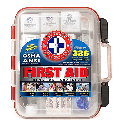 The words are valuable along with the transparent case. The kit comes with 326 pieces that are accessed rapidly from the layperson or healthcare provider. The kit comes in other forms as well that does not provide a transparent covering. The items are still recognizable for easy and quick access. The general price is between $34 to $40 and is easily transported for hikes, camping, fishing, sports event, and boat trips. The kit is typically made in China but is obtainable from Sam stores in the United States. The contents include: